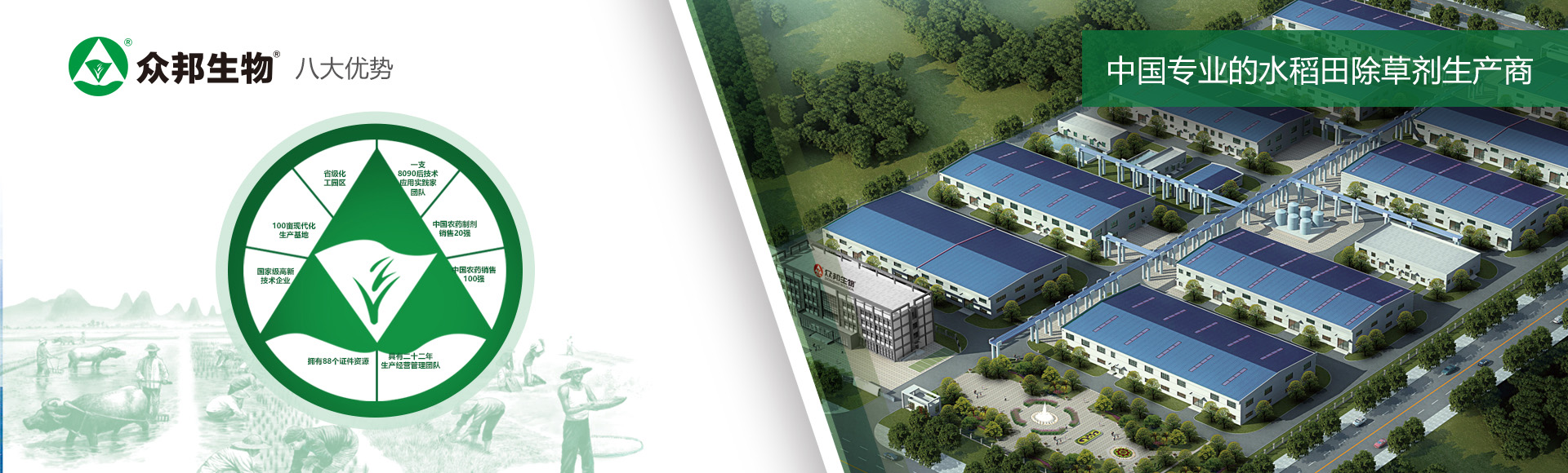 安徽眾邦生物工程有限公司成立于1997年12月。公司以新型生物農(nóng)藥為主導,兼顧生化復配和化學復配劑型農(nóng)藥研發(fā)、生產(chǎn)、銷售與應用技術服務。